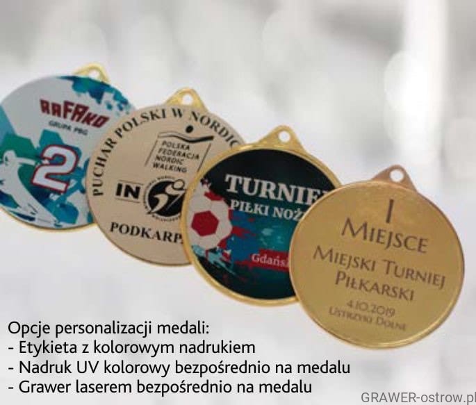 • opis na medalu grawerowany laserem lub nadruk bezpośredni (te opcje wyceniane są indywidualnie, cena zależy od wielkości nadruku i ilości).