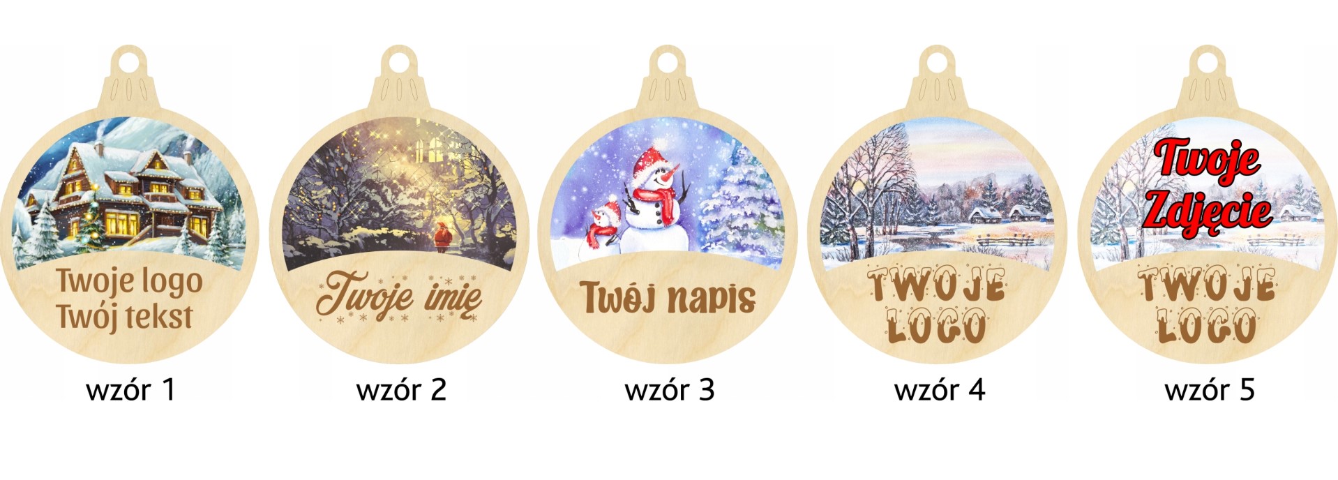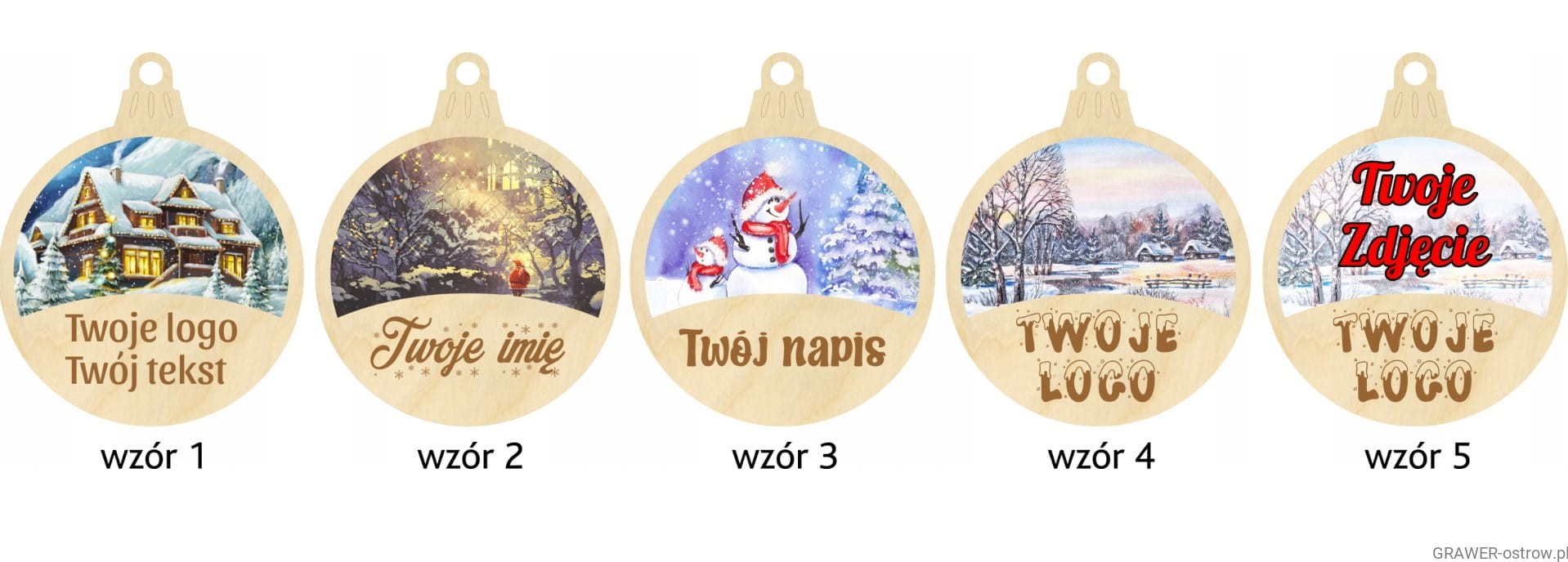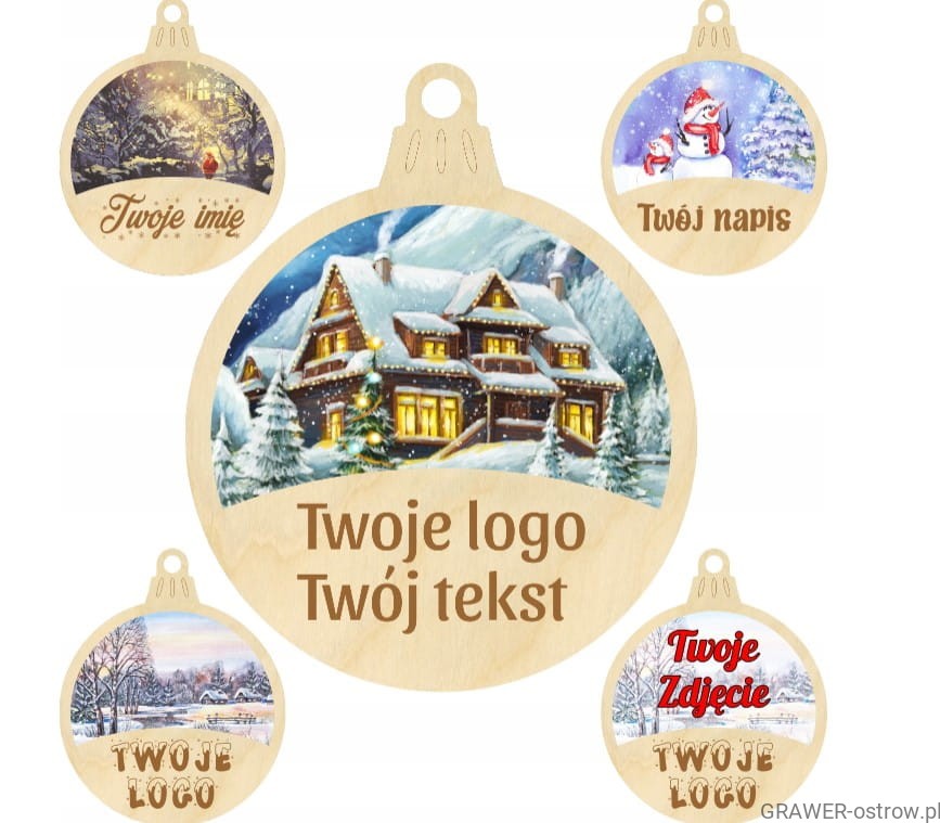Drewniana bombka dwuwarstwowa z grawerem i kolorowym nadrukiem 9,8cm Cechy charakterystyczne: