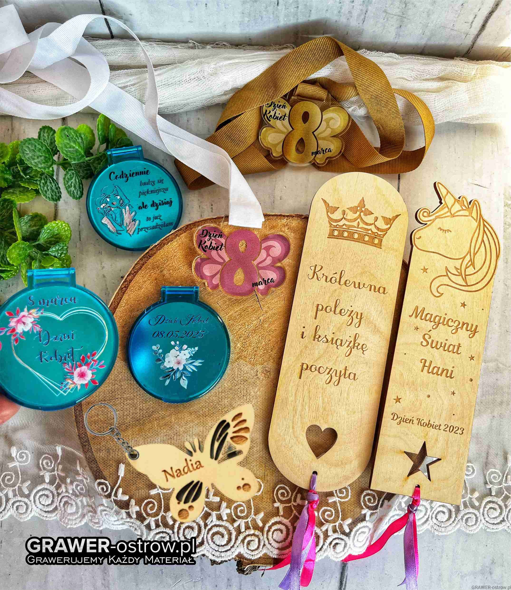 Zakładka do książki z personalizacją to świetny pomysł na prezent na Dzień Kobiet. Zakładka wykonana jest z naturalnej sklejki a na jej powierzchni znajduje się grawer w wybranym wzorze. Do zakładki dołączona jest wstążeczka. Tak skomponowany prezent z pewnością przypadnie do gustu każdej kobiecie w każdym wieku.