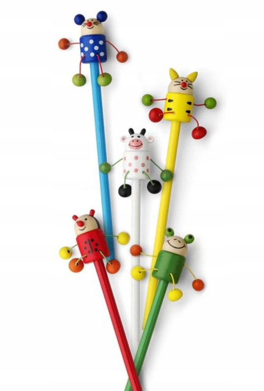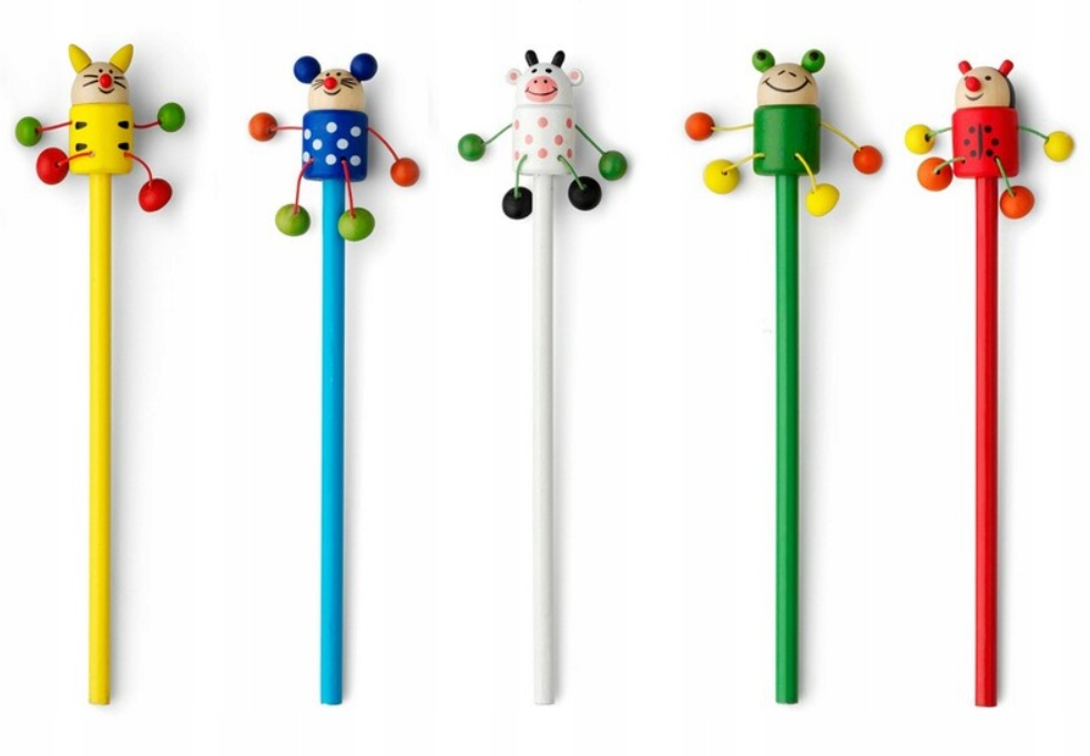 Wprowadź radość i kolor do szkolnej ławki lub domowego biurka! Ten wyjątkowy zestaw pięciu kolorowych ołówków ozdobiony jest uroczymi, drewnianymi figurkami zwierzątek, które "tańczą" przy każdym ruchu. To idealne połączenie praktycznego artykułu piśmienniczego z zabawnym gadżetem, który zachęca do pisania i rysowania.