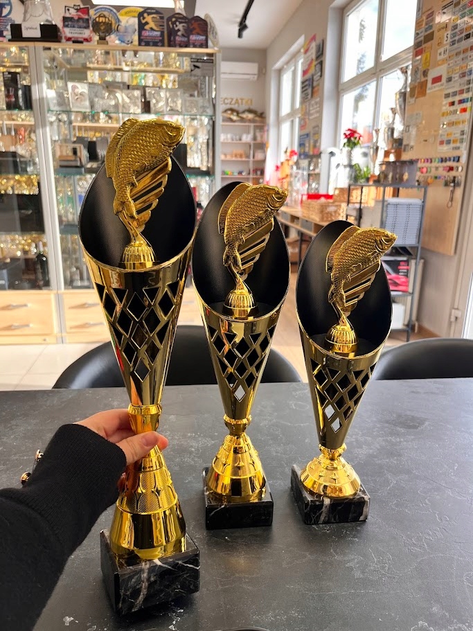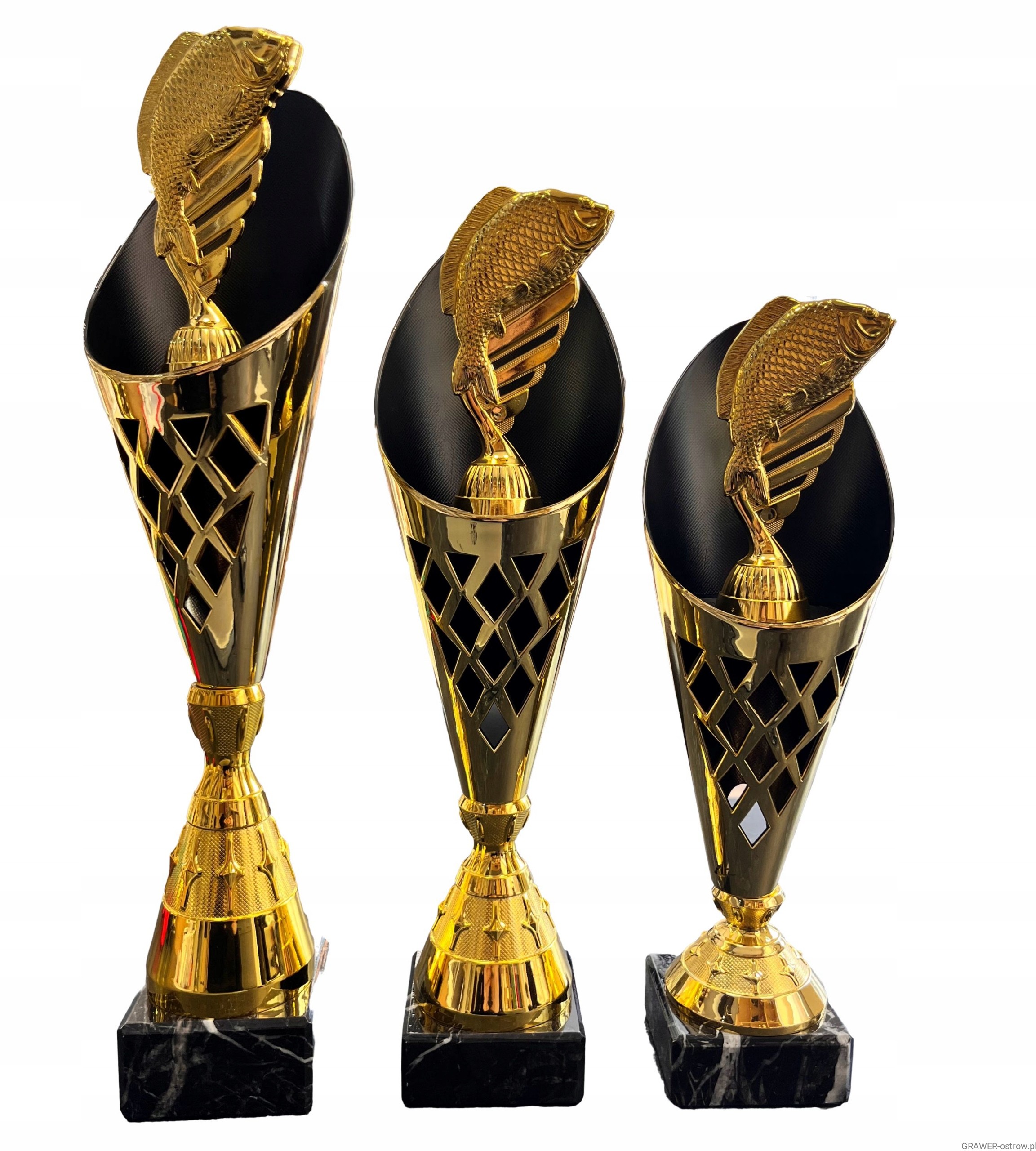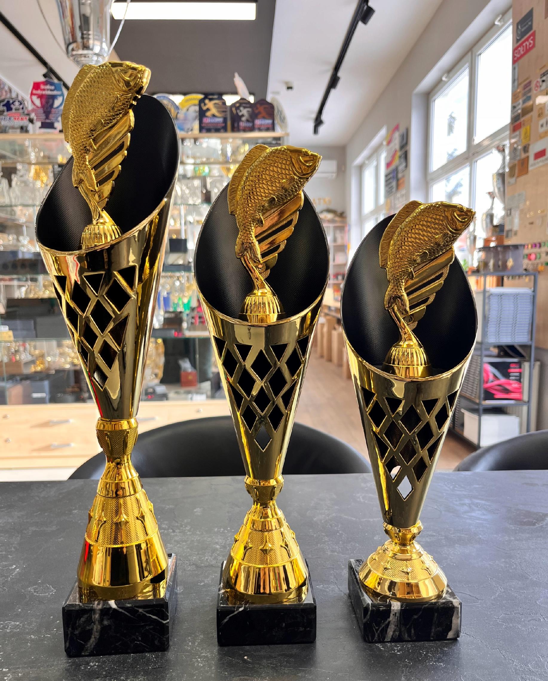 Zestaw 3 Pucharów Wędkarskich 37/33,5/32cm Ryba Karp zawody Opis