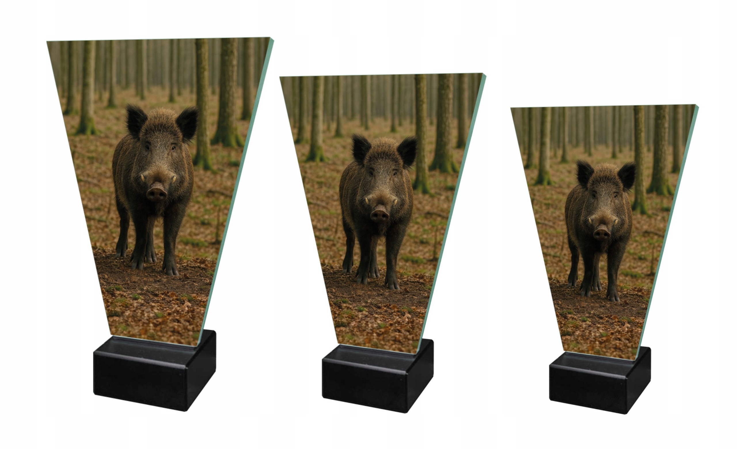 Komplet trzech szklanych statuetek z dzikiem – wyjątkowa nagroda dla myśliwych i pasjonatów przyrody