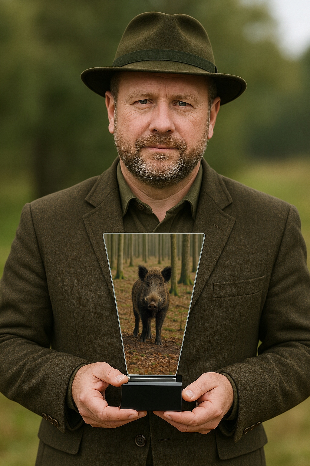Elegancki komplet trzech statuetek wykonanych z wysokiej jakości szkła, ozdobionych efektowną grafiką przedstawiającą dzika. Ich ponadczasowy design sprawia, że stanowią one idealną nagrodę na zawody łowieckie, konkursy strzeleckie, turnieje tematyczne czy wydarzenia związane z łowiectwem i przyrodą.